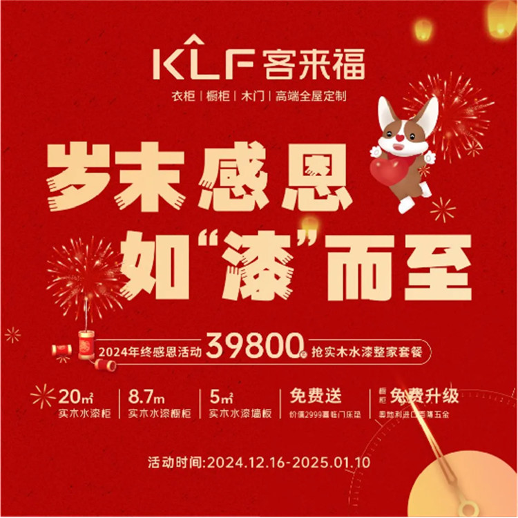 實(shí)木水漆,整家煥新。即日起至2025年1月10日,客來(lái)福家居聯(lián)動(dòng)全國(guó)百城千家門店,共同開(kāi)啟“2024年終感恩”全民狂歡活動(dòng),為家居品質(zhì)升級(jí),環(huán)保升級(jí),舒適升級(jí)。