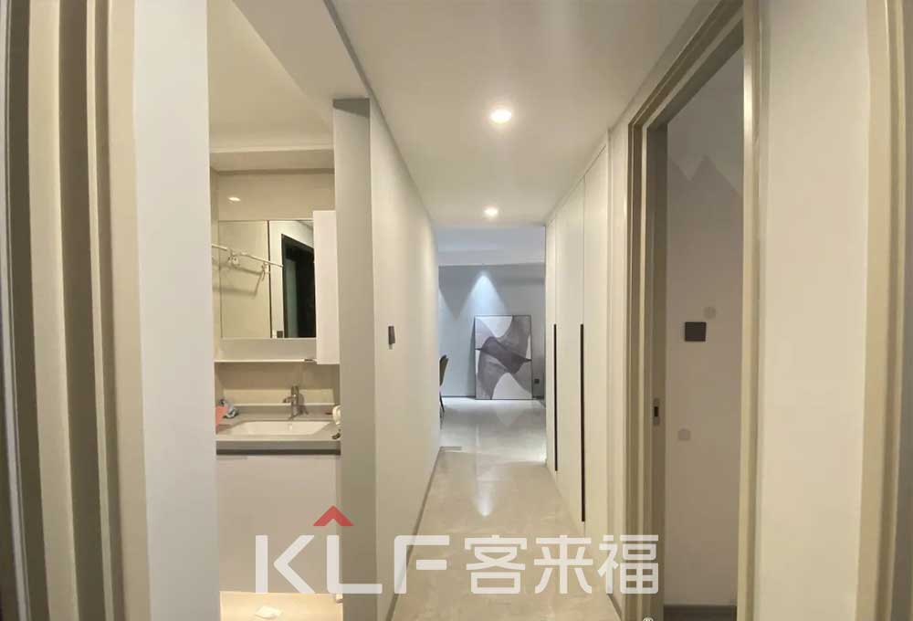 客廳通道臥室的過道很寬,所以設(shè)計(jì)出一款嵌入式的柜子,不僅不占用空間,還留出很大的空間收納衣物,相當(dāng)于一個(gè)小型的儲(chǔ)物間。乳白色的柜體不會(huì)突兀,到頂?shù)囊鹿耖T板采用了拉直器固定,即是再高門板也不會(huì)變形彎曲。