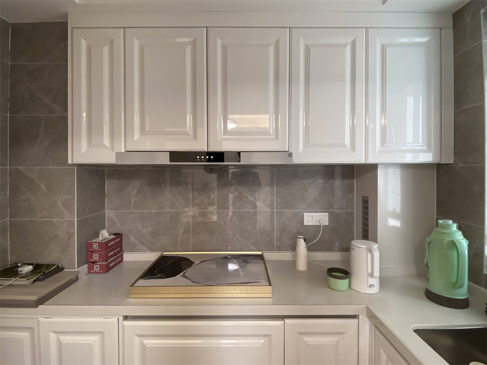 廚房是L型的櫥柜布局,切菜區(qū)、臺盆區(qū)、烹飪區(qū)形成一條動線,讓烹飪不再手忙腳亂。芬蘭白膜壓櫥柜門板,如奶油般的質感更加細膩自然。吊柜應當與臺面保持距離,避免因為距離過近影響使用效果。