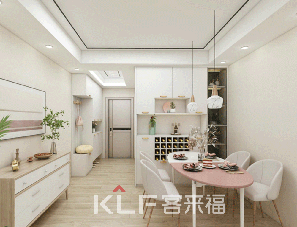 我們將廚房設(shè)置在了入戶的旁邊,整體顏色偏暗,更耐油煙污染。U型的操作臺(tái)可使夫妻二人配合更加貼切,地柜與吊柜的搭配組合,讓做飯時(shí)的調(diào)料放取收拿更加得心應(yīng)手。從廚房出來(lái)便是餐桌和酒柜了,開(kāi)放式設(shè)計(jì)可隨手置物,充足的收納讓餐桌時(shí)刻保持干凈整潔。暖色調(diào)的搭配使得餐廳更有家的味道。再往里走就是客廳了,簡(jiǎn)單的裝修實(shí)用且明朗。撞色設(shè)計(jì),讓客廳獨(dú)具溫暖與活力。