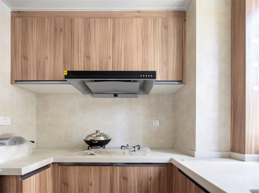 U型動(dòng)線的設(shè)計(jì),從洗菜到煎炒烹炸一氣呵成,整個(gè)臺(tái)面收拾的十分干凈敞亮。木色柜身的花紋看起來十分充滿自然感,紋路清晰光澤度高。整面到頂?shù)墓褡邮∪プ罡咛幋驋叩牟襟E,減少了頂部落灰的煩惱。顏色搭配上十分柔和,一眼望去便有溫馨的感覺。