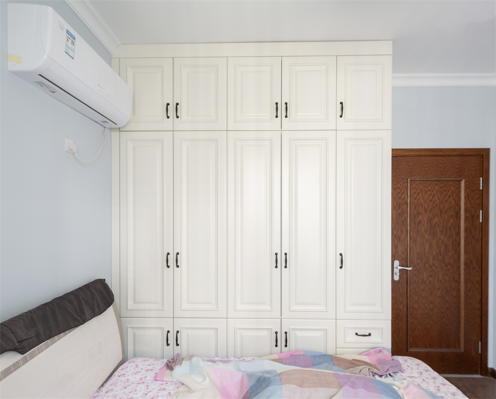 屋主在臥室內(nèi)做了內(nèi)嵌衣帽間的設(shè)計(jì),屋主在衣帽間柜體的選擇上采用整體性原則,統(tǒng)一選用芬蘭白的柜體。這個(gè)衣帽間采用開放性的設(shè)計(jì),轉(zhuǎn)角衣桿在接縫處沒有突出的部分,穩(wěn)定且承重能力強(qiáng)。