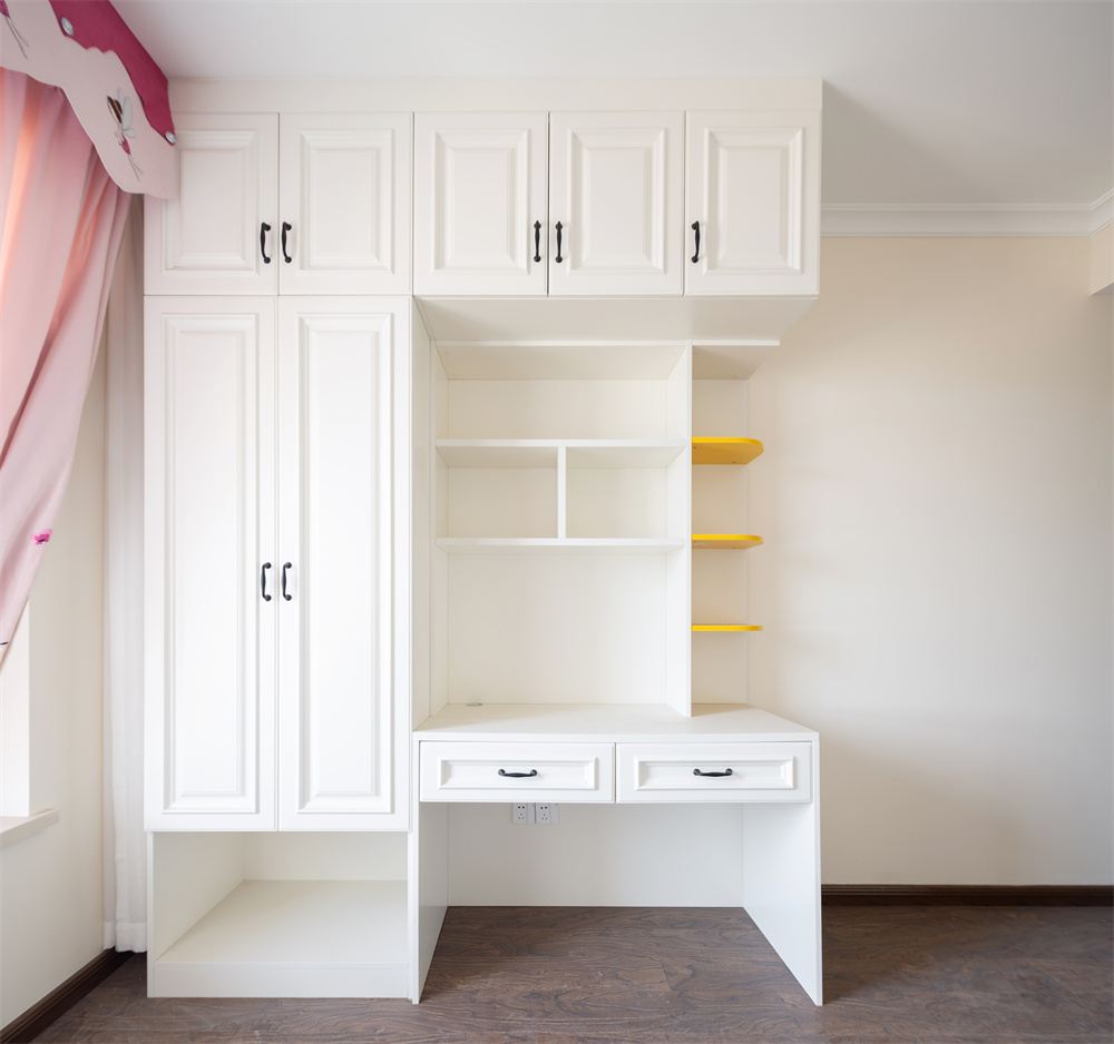在設(shè)計(jì)的過程中考慮到兒童房的特點(diǎn),在把手處做了圓滑包邊的設(shè)計(jì),避免在打開柜子的過程受到傷害,并且柜身表面十分光滑,拐角處用半圓形的設(shè)計(jì)可最大限度上避免孩子出現(xiàn)磕碰的情況,為孩子今后的成長保駕護(hù)航。