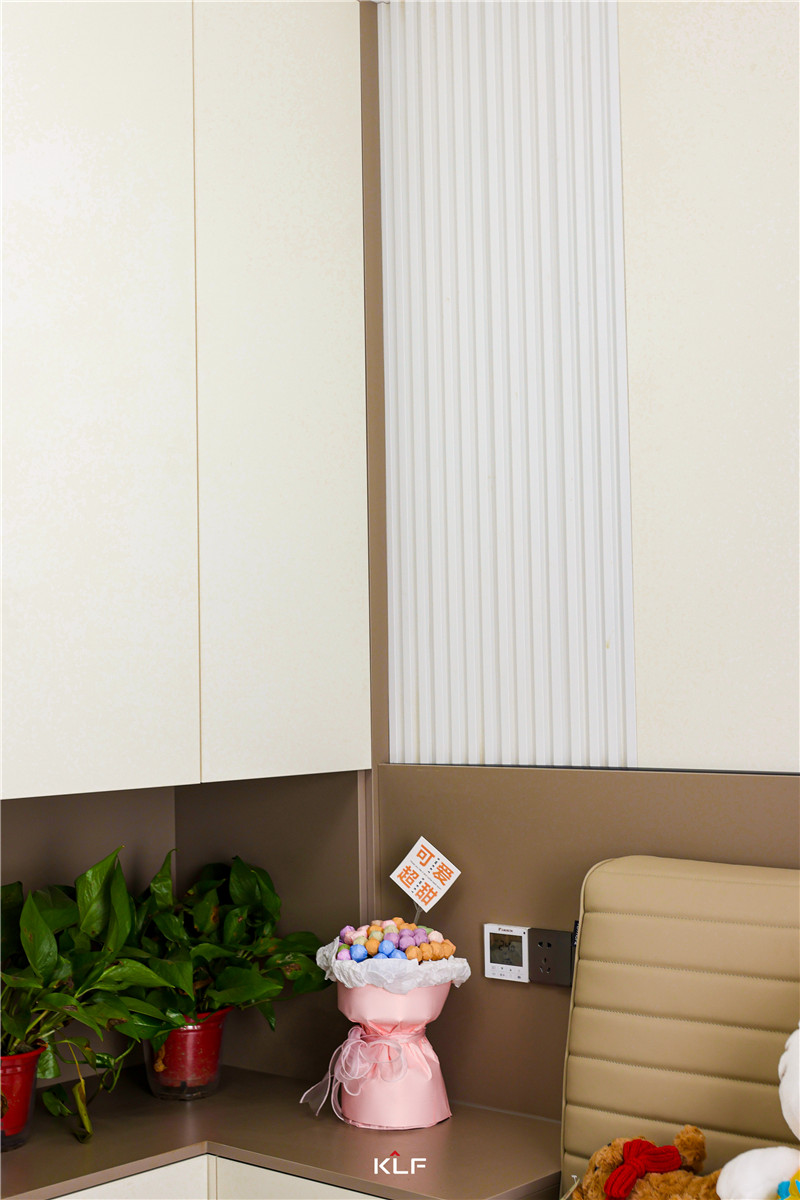 廚房采用U型布局,灰白兩色搭配簡(jiǎn)單干凈。餐邊柜的設(shè)計(jì)遵循“二八原則”,小面積展示+大空間儲(chǔ)物,可以讓家居用品都有序擱置,不凌亂的家,才更美好。柜體采用PET門板,光澤度好,搭配半透茶色玻璃柜門,通透又優(yōu)雅。