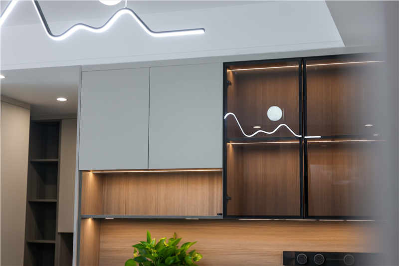 在餐廳與衛(wèi)生間的區(qū)域間以一組隔斷柜去進行空間美化,穿插的設計手法以抽屜分隔整個高柜,整體尺寸更加協(xié)調(diào),中部加入長虹玻璃的設計可以搭配綠植或是手辦擺件,整體會更精致。