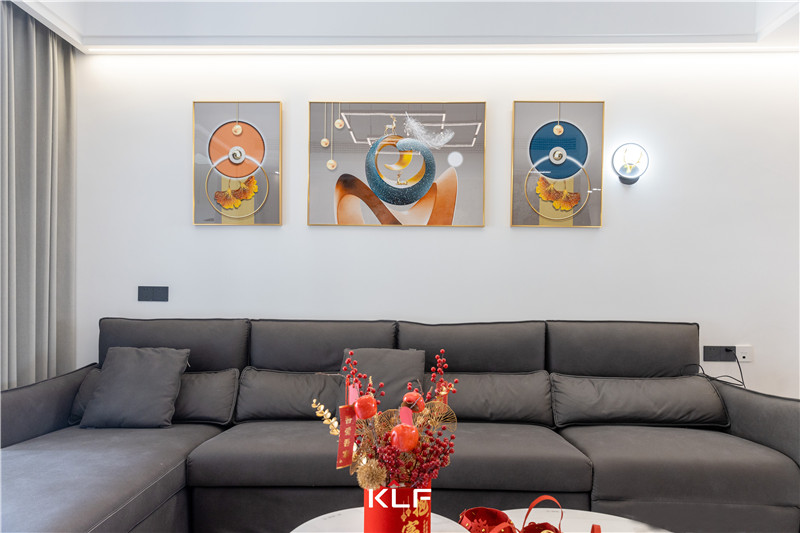 在沙發(fā)背景墻這一面,屋主則是選擇懸掛幾幅喜愛的掛畫,這樣的裝飾手法很常見,也很靈活,可以根據(jù)屋主的喜好隨時改變,更為現(xiàn)代。