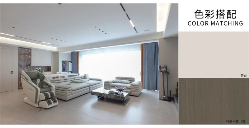 這戶(hù)案例通過(guò)茶白這款色彩在不同場(chǎng)景中的運(yùn)用,以特調(diào)的棕色去進(jìn)行點(diǎn)綴;推敲每一處細(xì)節(jié)設(shè)計(jì),最終讓房子變成簡(jiǎn)約不減“美感”的溫馨之家。