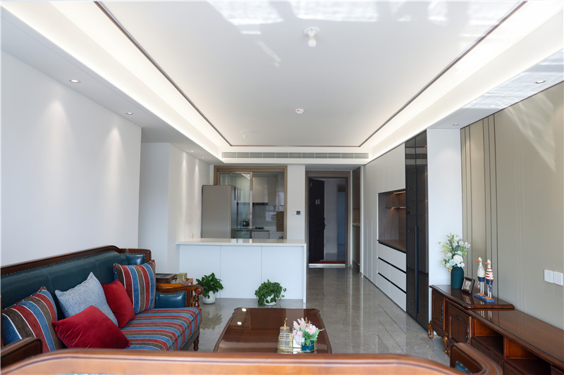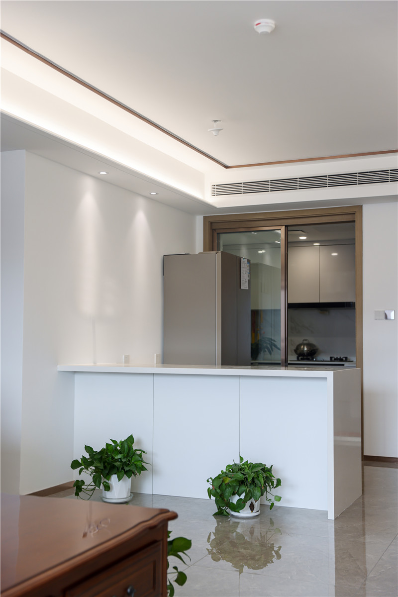 一面到頂玄關(guān)柜作為緩沖區(qū),讓主人卸下白天奔波的滄桑,迎接溫暖治愈的家空間。