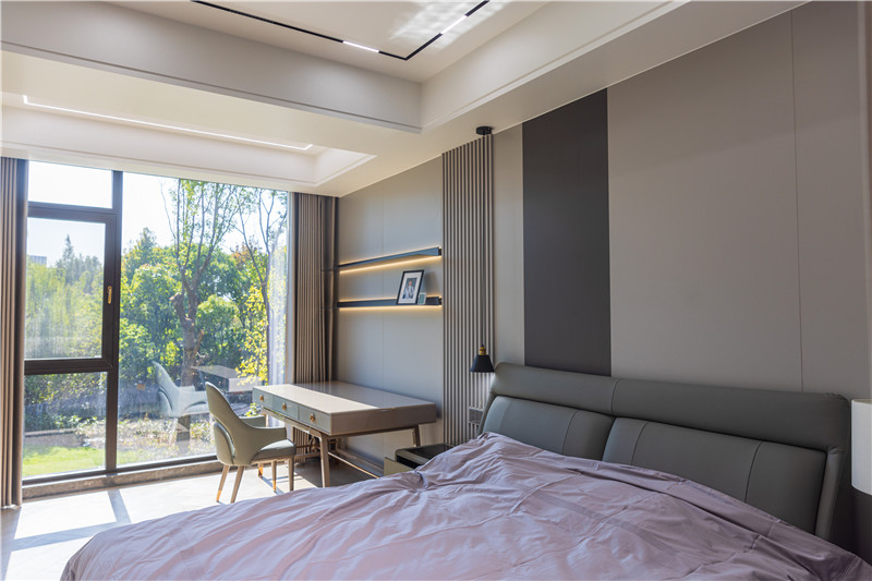 男孩房無主燈設(shè)計(jì),以整面飄窗有效保障采光及室內(nèi)通風(fēng)效果。