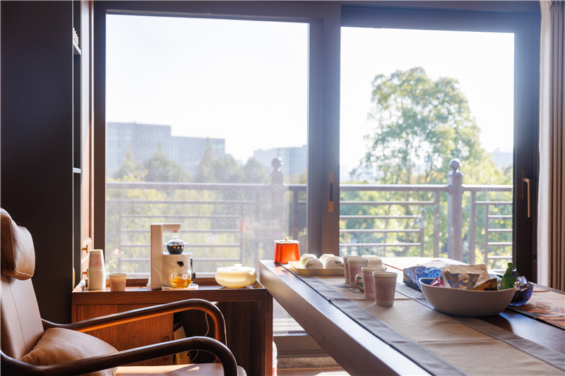 四樓為休閑區(qū),或靜、或聚、或談,短時(shí)間的歡愉成為心底的能量,讓來日的期待更勝一籌!茶為大雅之物,新中式茶室展現(xiàn)古文化的風(fēng)骨之氣。