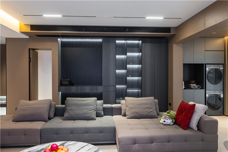 沙發(fā)背景墻為家里的動(dòng)線(xiàn)區(qū),立柜+穿插設(shè)計(jì)貼墻而立,好看且頗顯趣味。