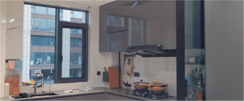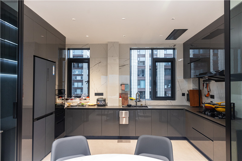 廚房U型構(gòu)造,根據(jù)墻體布局而建,洗切烹盛的動(dòng)線(xiàn)提升便捷度。