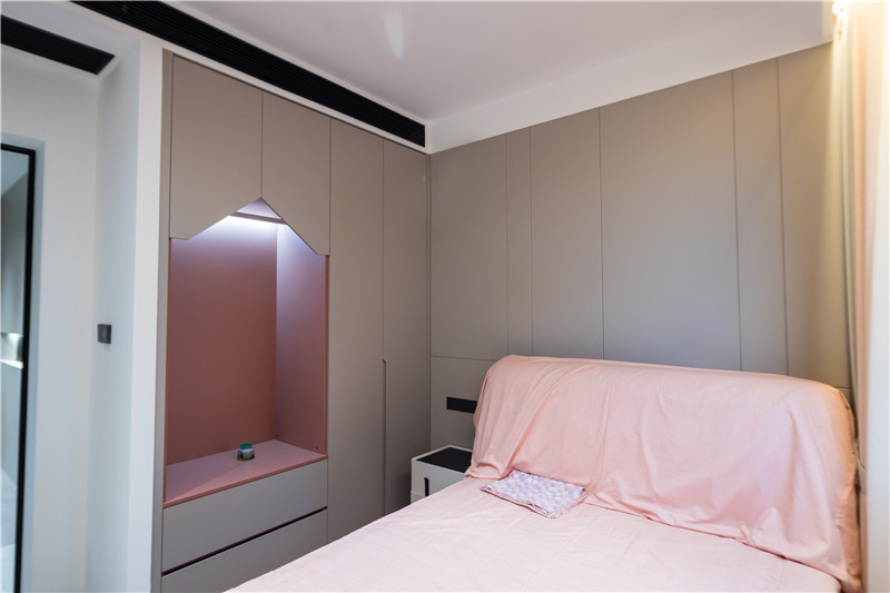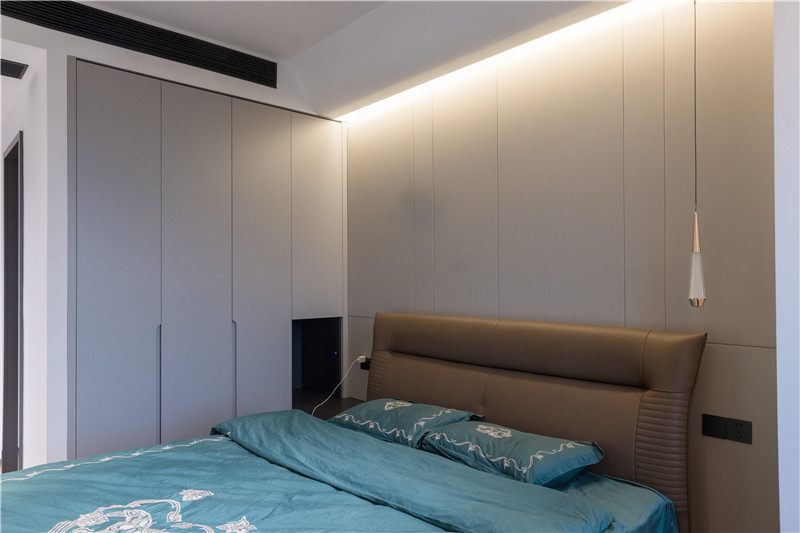 壁柜有效保障收納力、門(mén)板采用銑槽長(zhǎng)拉手、柜體延伸為床頭柜,簡(jiǎn)約實(shí)用;吊頂滿(mǎn)滿(mǎn)小心思,增強(qiáng)空間的光影感。