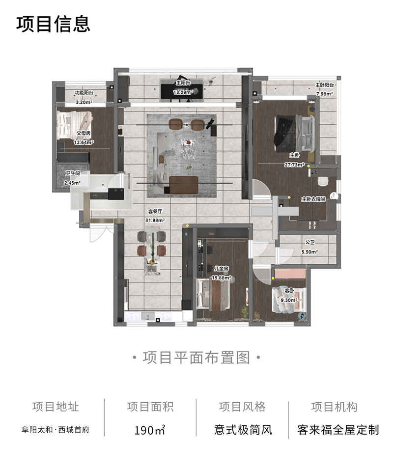 本案是來(lái)自阜陽(yáng)太和西城首府的190㎡的平層住宅。