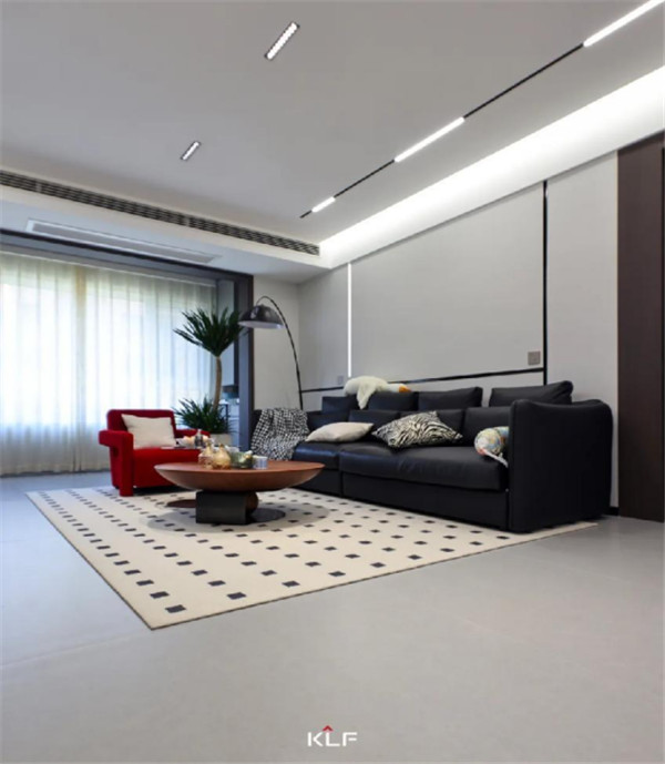 客廳打破空間局限,以簡潔開放的設(shè)計拉伸空間尺度,體感上給予居住者更寬闊的視野。