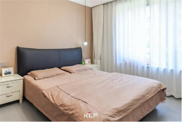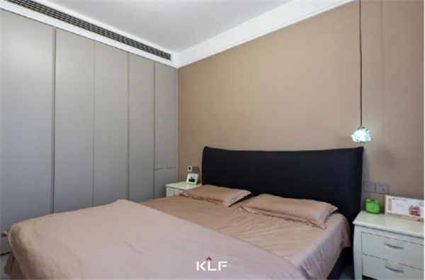 主臥一側(cè)到頂式衣柜,延展視覺,搭配銑槽拉手,讓衣柜擁有小亮點;內(nèi)部合理分區(qū),讓小空間的收納力不容小覷;靠床可做小型展覽柜,個性化裝飾。