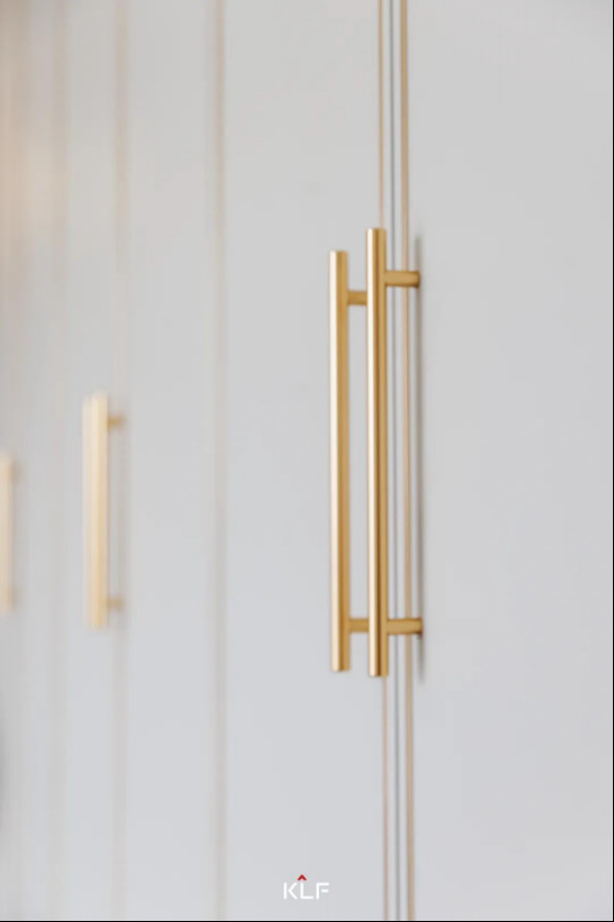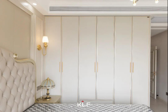 主臥木門和衣柜延續(xù)水漆茶白色調(diào),與空間和諧統(tǒng)一,臥室空間更干凈整潔。精巧的古銅色拉手點(diǎn)綴,讓整個(gè)空間顯得大氣十足。