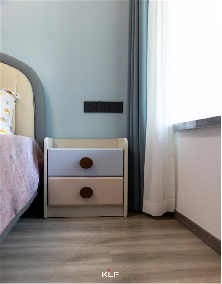 在色彩上,蘭迪粉柔和可愛(ài),芬藍(lán)色清新淡雅,搭配布魯灰門(mén)板十分協(xié)調(diào)美觀。