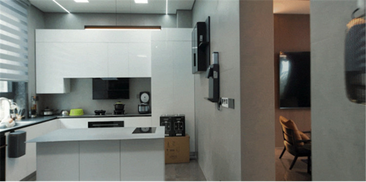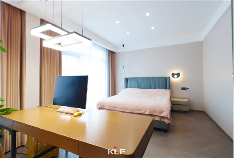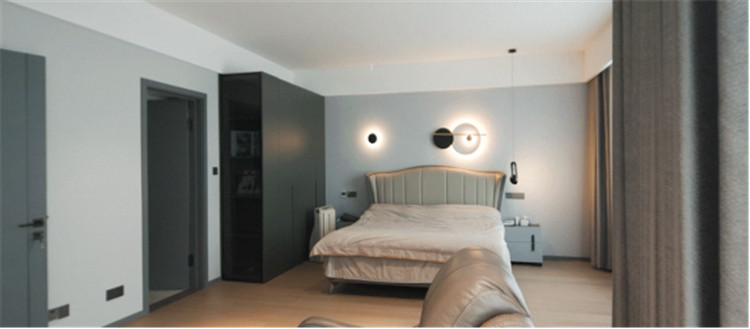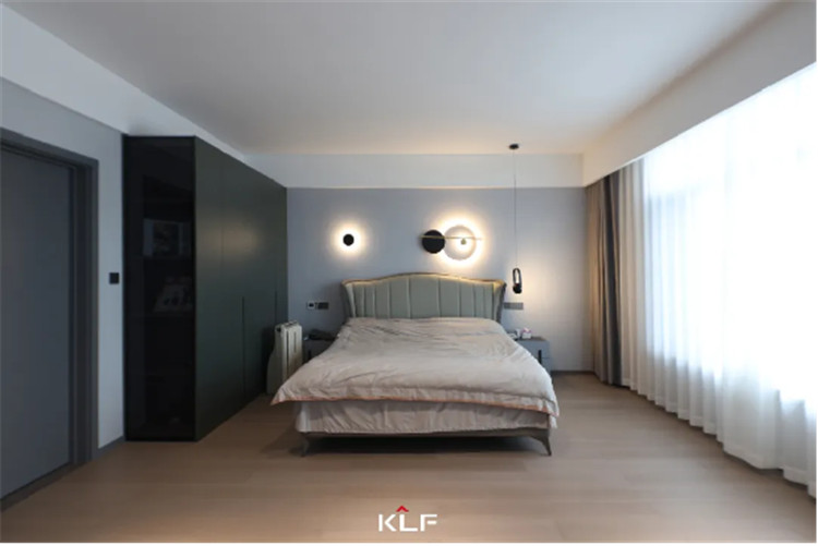 女兒房:一體化設(shè)計(jì)+藏八露二原則,整潔清爽;水洗灰柜門(mén)結(jié)合黑玻,美感在線。