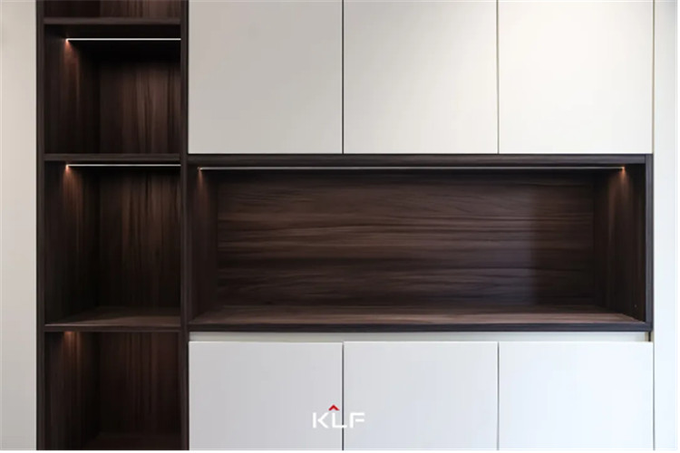餐邊柜收起生活的繁雜,還原高端定制的有序與雅致。設(shè)計(jì)師延伸柜體轉(zhuǎn)角后在地柜上留了一個(gè)西廚的操作臺(tái),中西廚結(jié)合,包容每一位家人的飲食習(xí)慣,讓用餐與烹飪自成一體,傾情享受他們的“食光”。