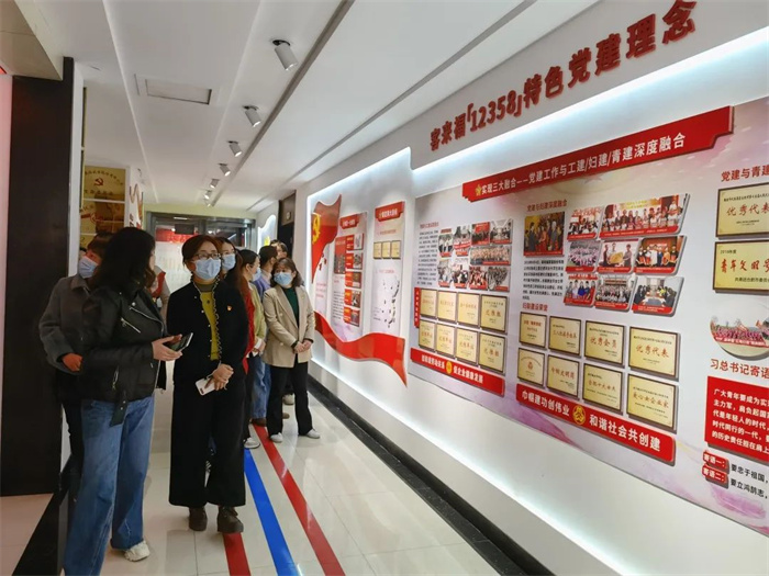 隨后,考察團(tuán)來(lái)到客來(lái)福企業(yè)文化墻區(qū)域,在魏總裁和解說(shuō)員的介紹下,考察團(tuán)一行對(duì)于客來(lái)福的發(fā)展歷程以及黨建工作開(kāi)展有了更全面的認(rèn)識(shí)。