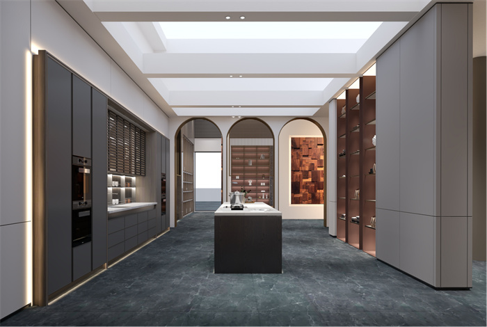 櫥柜+智能島臺(tái)的空間布局,既節(jié)省了空間,也優(yōu)化了家庭動(dòng)線。廚房一半采用了嵌入式柜體,考究的布局和純實(shí)木門(mén)讓餐廚空間簡(jiǎn)約大氣。島臺(tái)與烹飪區(qū)平行,空間明朗、清新自然。