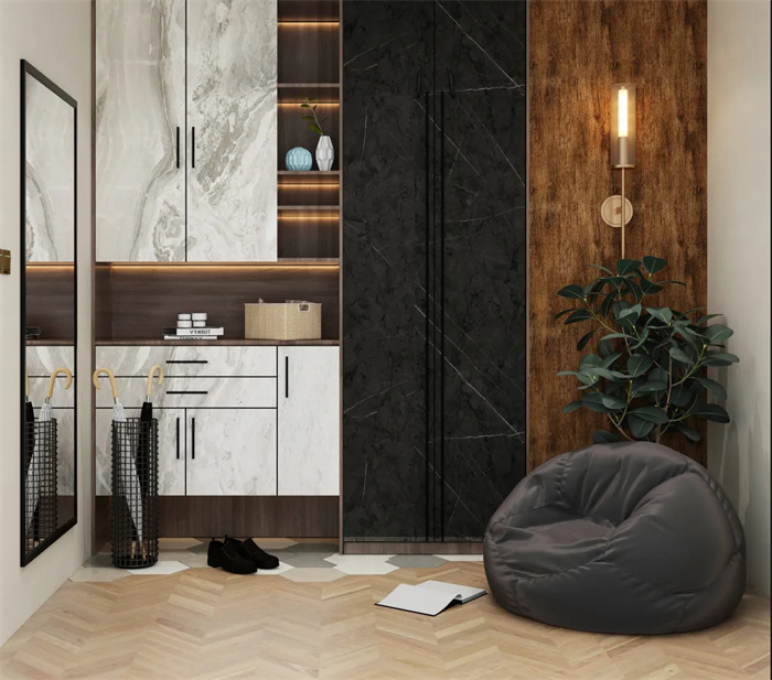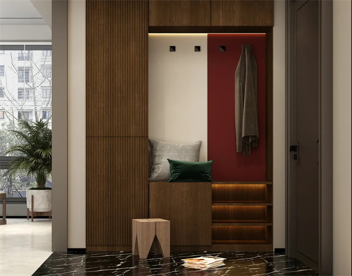 貼心設(shè)計(jì)從打開(kāi)家門(mén)的那刻開(kāi)始,結(jié)合玄關(guān)打造一個(gè)換鞋凳,便于進(jìn)出門(mén)脫換鞋,避免因站立彎腰換鞋發(fā)生磕碰、摔倒等情況。