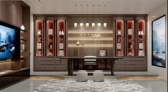 一個(gè)書(shū)香隱隱的茶室是送給父親最好的禮物,打造書(shū)房、茶室一體式空間,一房?jī)捎?,功能?fù)合,辦公休息兩不誤。