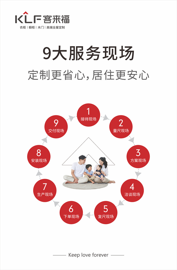 客來福家居扎根家居行業(yè)二十年,從單一家具產(chǎn)品到實(shí)現(xiàn)全屋定制,客來福用產(chǎn)品和服務(wù)說話,開辟了一條屬于自己的發(fā)展之路。在發(fā)展過程中客來福不忘初心,將“締造幸福家居生活,讓愛無界”作為企業(yè)愿景,為更多中國家庭定制幸福家居生活。