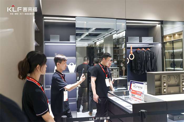 本次中國建博會(上海)高定展館備受矚目。一大早,客來?!じ镂镎箯d內(nèi)就有眾多意向商及客戶前來咨詢加盟政策、了解產(chǎn)品色彩、板材、工藝運用等,客來福專業(yè)人才隊伍以貼心及周到的服務,為大家答疑解惑。