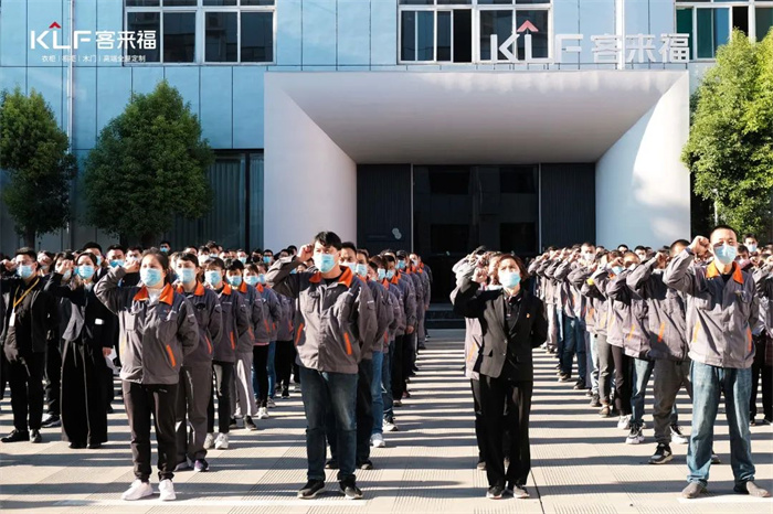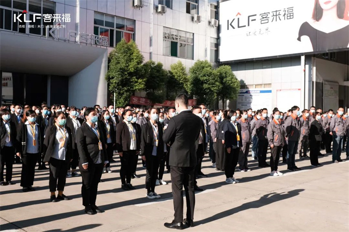 首先進(jìn)行的是升國(guó)旗奏國(guó)歌儀式,客來福家居作為民族企業(yè),始終堅(jiān)決地將愛國(guó)擁黨作為企業(yè)發(fā)展的首位。在飄揚(yáng)的旗幟下,客來福全員進(jìn)行企業(yè)價(jià)值觀宣讀,客來福家人們將通過不懈努力和精進(jìn)合作,實(shí)現(xiàn)品牌發(fā)展的美好愿景。