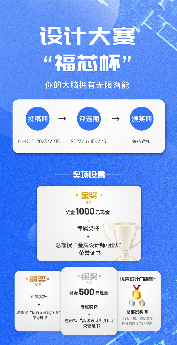 今天,客來福“福芯杯”面向全國客來福體系的經(jīng)銷商設(shè)計師、直營店設(shè)計師、總部設(shè)計類相關(guān)崗位(個人或團(tuán)隊)而來,期待靈感的碰撞、創(chuàng)意的集結(jié)、原創(chuàng)的生命力!