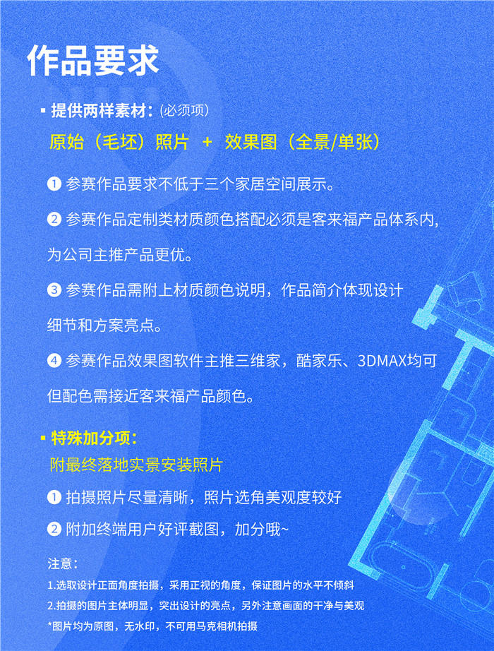 注:所有作品必須為本年度內(nèi)設(shè)計師獨(dú)立完成的方案,如有盜取、冒用他人作品的一經(jīng)查實取消參賽資格,并通知當(dāng)?shù)亟?jīng)銷商。