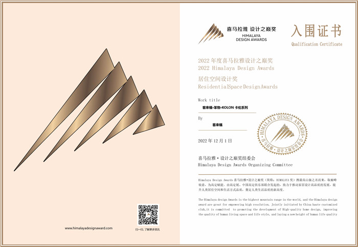 崢嶸歲月,初心不改??蛠砀<揖釉?/span>2022年榮獲“中國家居綜合實(shí)力100強(qiáng)品牌”稱號,其「墨奈系列」入選《2021-2022中國家居行業(yè)精品年鑒》,「客來?!じ镂铩?/span>KOLON卡倫系列」入圍“HimalayaDesignAwards喜馬拉雅·設(shè)計之巔”居住空間設(shè)計獎。(查看原文)