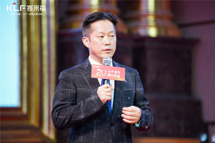 在全場的歡呼聲中,客來福家居董事長尹其宏上臺致辭。在企業(yè)文化板塊,尹董重點解讀了“誠信專注創(chuàng)新奮斗共贏”的價值觀。我們將以“一體兩翼”為戰(zhàn)略引領(lǐng),走出自己的高端全屋定制之路;以組織變革、模式創(chuàng)新等打通營銷各環(huán)節(jié);以營銷動作,交付動作兩大動作做戰(zhàn)斗執(zhí)行,助力實現(xiàn)成為中國高端定制家居首選品牌的愿景。