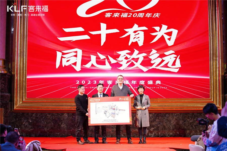 2023年客來福能夠做出哪些改變呢?不僅是新橋智能家居產(chǎn)業(yè)園的投產(chǎn),也是智能化設(shè)備的引進。在年會上客來福與德國伊瑪激光封邊機來訪人員舉行交機儀式,賦能“高端全屋定制”。