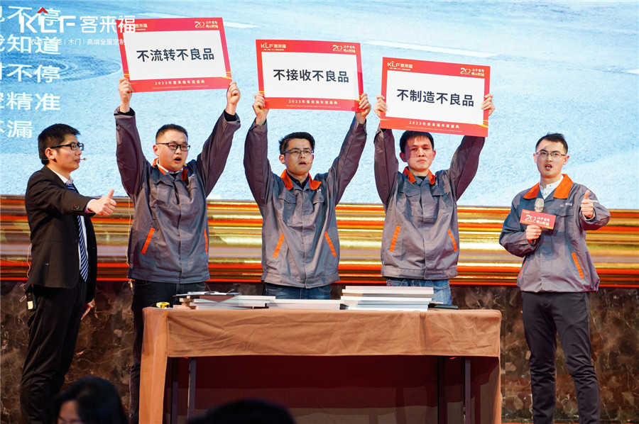 供應(yīng)鏈代表表示,我們工作在生產(chǎn)一線,不管是小五金還是基礎(chǔ)板材,我們都會以百分百精力做好打磨。經(jīng)銷商表示,前方?jīng)_鋒離不開后方生產(chǎn),上下一心,我們勢不可擋。作為公司十幾年的老客戶表示,服務(wù)是我們關(guān)心的問題,希望客來福不忘初心,繼續(xù)前行。