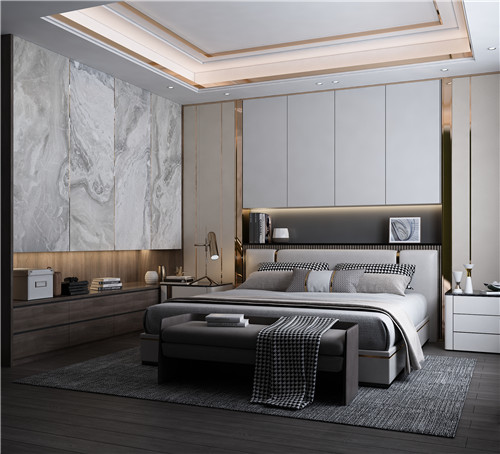 客來?!拘浅轿镎Z】系列,采用無主燈設(shè)計(jì),在天花板吊頂內(nèi)置長條燈,燈光溫和不刺激比較適用于臥室;在適當(dāng)滿足使用者臥室燈光亮度的同時(shí),避免了光線過于明亮或昏暗的麻煩,輕輕松松打造出實(shí)用輕奢氛圍感。