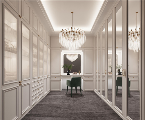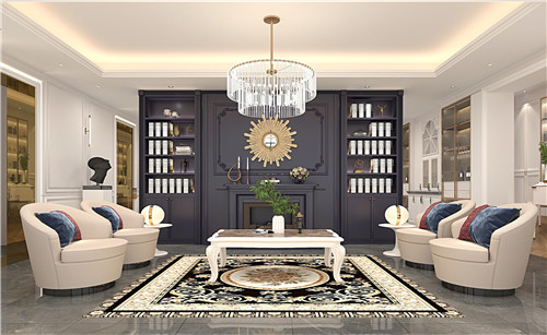 選用燈具、金屬壁掛、地毯等多種配飾,不同配飾共同構(gòu)成空間的多重表達(dá),裝飾選材也非常豐富,整體營造出古典與高貴的氛圍。
