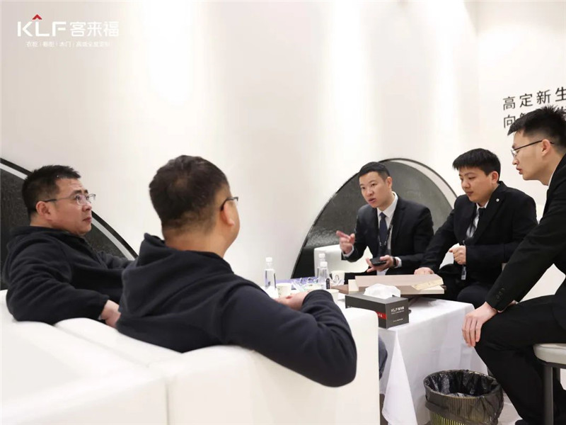 客來福工作人員為有加盟意向者介紹了客來福·革物的加盟政策,高定的潮流趨勢讓他們看見了共贏的機會,共識的達成,促進客來?!じ镂锲放迫瞬抨犖榈膹姶?。