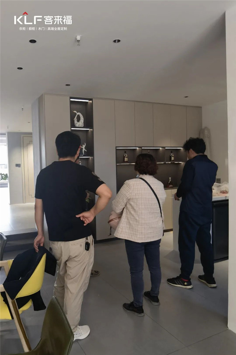 在現(xiàn)場,李劍波與王子寒與阜南縣客來福門店領(lǐng)導(dǎo)及員工先是在門店接待進(jìn)店客戶,通過產(chǎn)品展示和優(yōu)惠講解讓客戶了解本次活動(dòng)力度。隨后一行人帶領(lǐng)客戶走進(jìn)小區(qū),通過現(xiàn)場測量的方式帶領(lǐng)客戶講解空間設(shè)計(jì),讓客戶下單省心,住的安心。