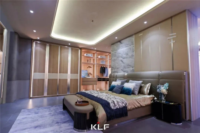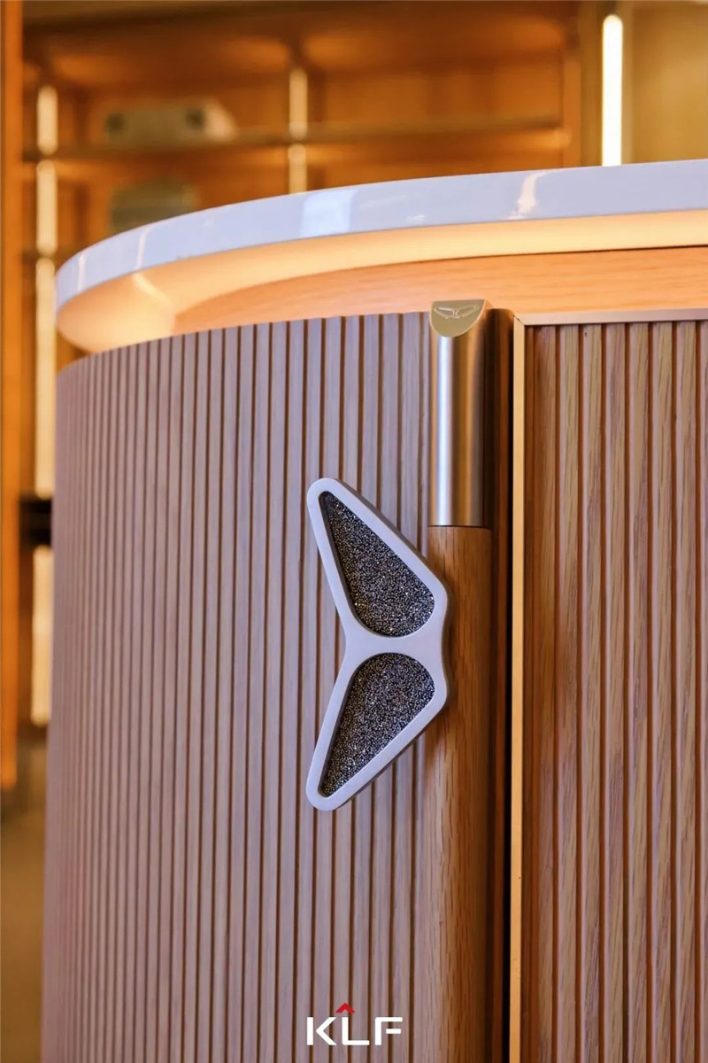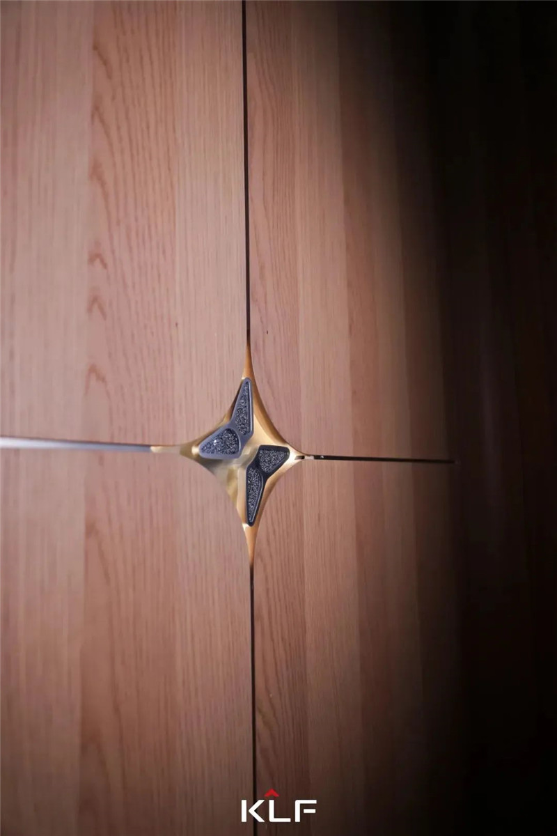 對于新奢產品,客來福在品質標準上也有著精細的打算。首先,水漆工藝以通透的漆與自然的木之間的碰撞,實現(xiàn)門墻柜一體的美感;以綠色環(huán)保安全的水漆工藝開拓賽道,賦予產品質感和格調。其次,高定產品需要搭配高定選材,不管是施華洛世奇水晶、馬牌皮革還是巴西黑檀等,產品細節(jié)和整體搭配都經過設計師的細致考量。