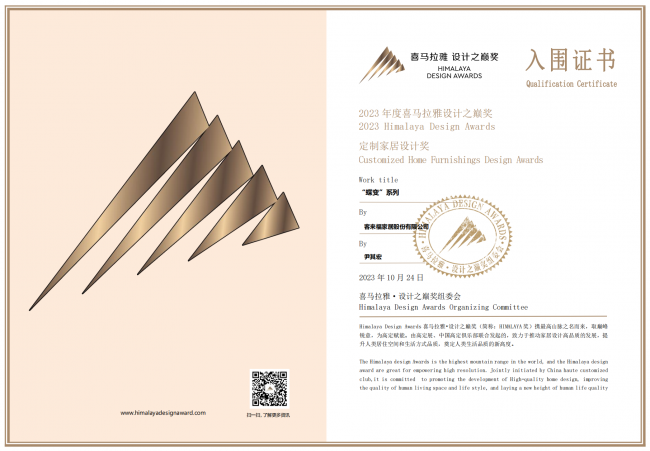 喜訊!客來福定制家居作品入圍喜馬拉雅·設(shè)計之巔獎