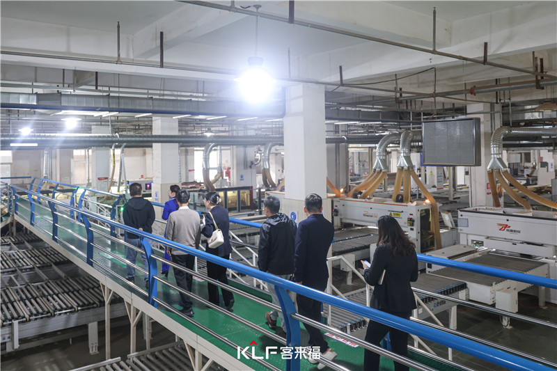 領(lǐng)導(dǎo)一行人首先參觀了客來福華東瑤海4.0工廠車間,對廠內(nèi)的板材制作工藝流程、信息化、智能化生產(chǎn)流程進(jìn)行詳盡的參觀了解,展現(xiàn)了客來福系統(tǒng)化、標(biāo)準(zhǔn)化的生產(chǎn)水平,以及在家居行業(yè)的品質(zhì)和實(shí)力。