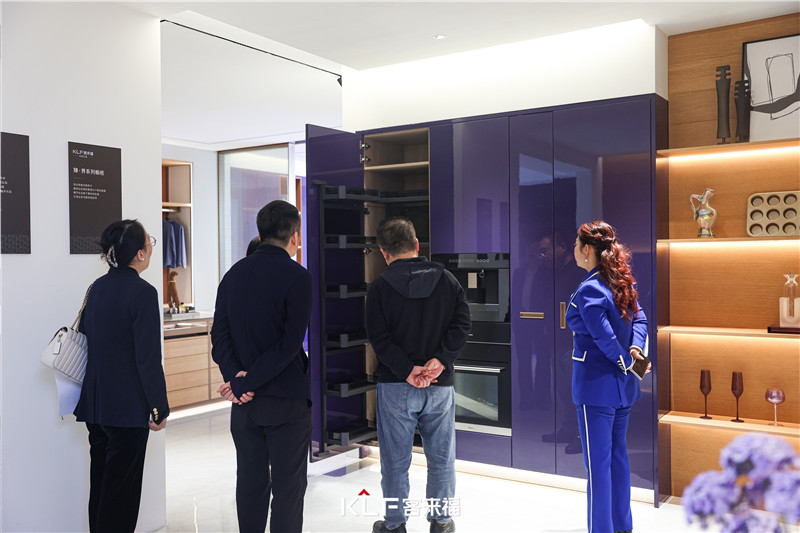 通過客來?,F(xiàn)場工作人員講解展廳產(chǎn)品,體現(xiàn)了客來福對產(chǎn)品的不斷研發(fā)創(chuàng)新,從實(shí)際生活出發(fā),充分考慮用戶的使用需求,用現(xiàn)代審美與核心設(shè)計(jì)手法,打造更懂中國家庭的定制家居品牌。