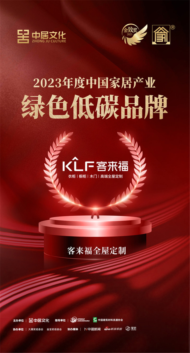 金致獎 | 客來福全屋定制榮獲「2023年度中國家居產(chǎn)業(yè)綠色低碳品牌」