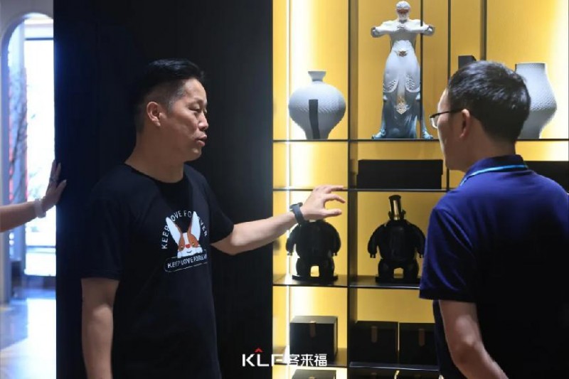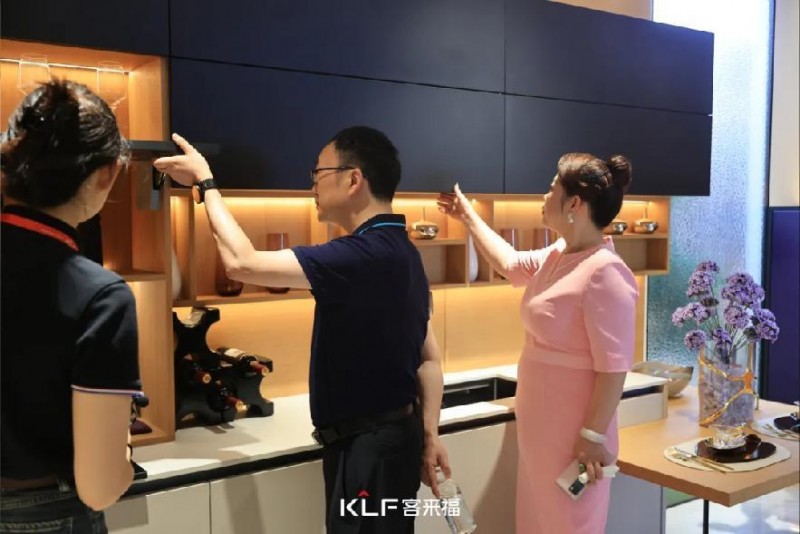 隨后,一行人走進(jìn)客來福高定展廳和第十二代、第十三代展廳。在展廳內(nèi),美菱集團(tuán)的領(lǐng)導(dǎo)們近距離地感受到了客來福產(chǎn)品的深厚魅力。