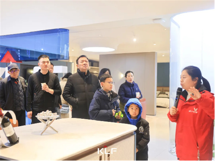 在工作人員的陪同解說下,老客戶一行開啟了展廳參觀之旅。置身人居和諧的高級場域,大家一起沉浸式體驗家居美學(xué)新境界,近距離實看實感客來福的多元化產(chǎn)品體系和精湛工藝,收集所有關(guān)于家的靈感。