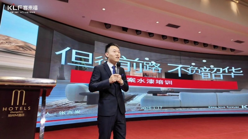 緊隨新品分享后,客來福設(shè)計(jì)督導(dǎo)主管張言發(fā)先生登臺,聚焦“水漆工藝與應(yīng)用”展開專項(xiàng)培訓(xùn)。他深入剖析了水性涂料的環(huán)保特性、工藝優(yōu)勢及終端展示要點(diǎn),通過實(shí)際案例解析,強(qiáng)化了經(jīng)銷商對客來福健康產(chǎn)品體系的理解與推廣能力,為終端市場注入了堅(jiān)實(shí)的環(huán)保技術(shù)支撐。