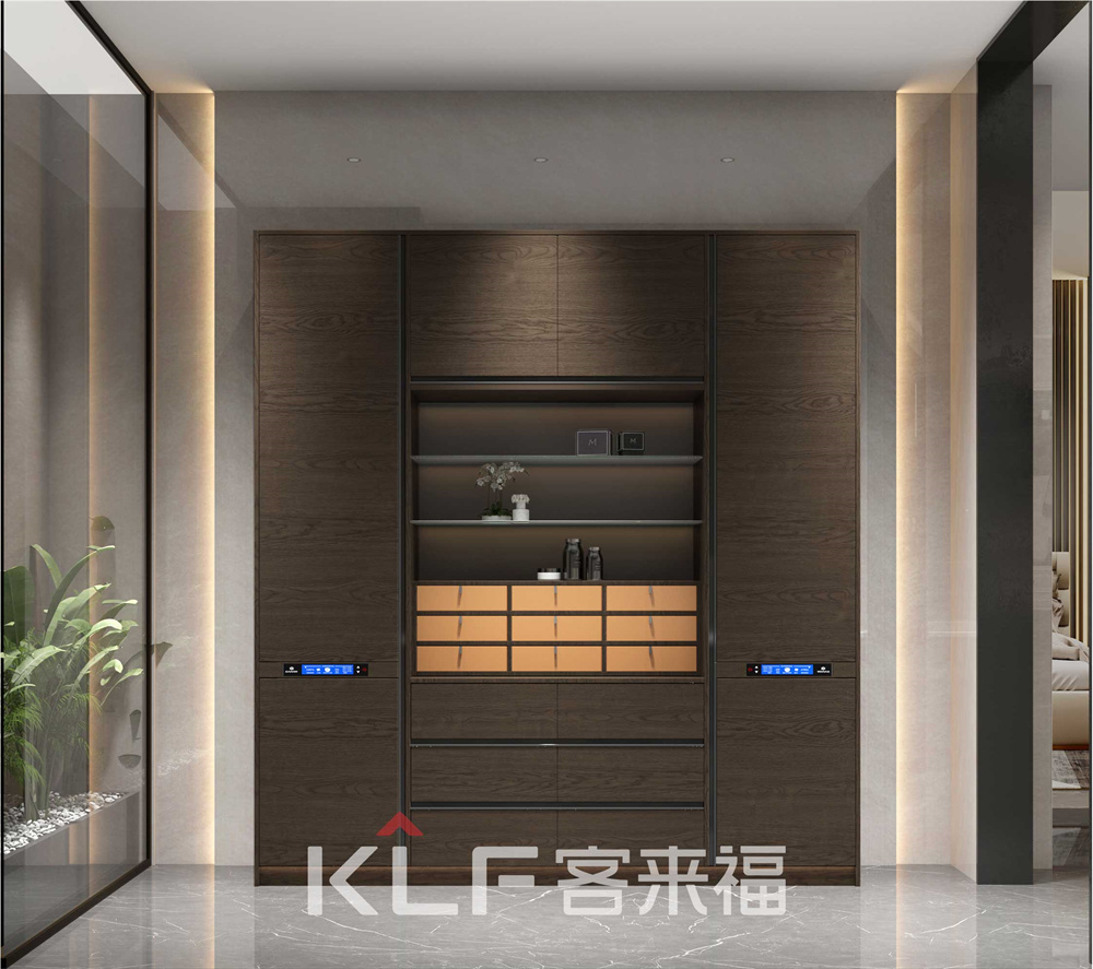 入戶空間門(mén)板采大面積積橫紋門(mén)板,在宣示我們產(chǎn)品高工藝的時(shí)候又不失設(shè)計(jì)感,旁邊的開(kāi)放格用簡(jiǎn)單的金屬框架加以裝飾,讓其更加高端大氣。